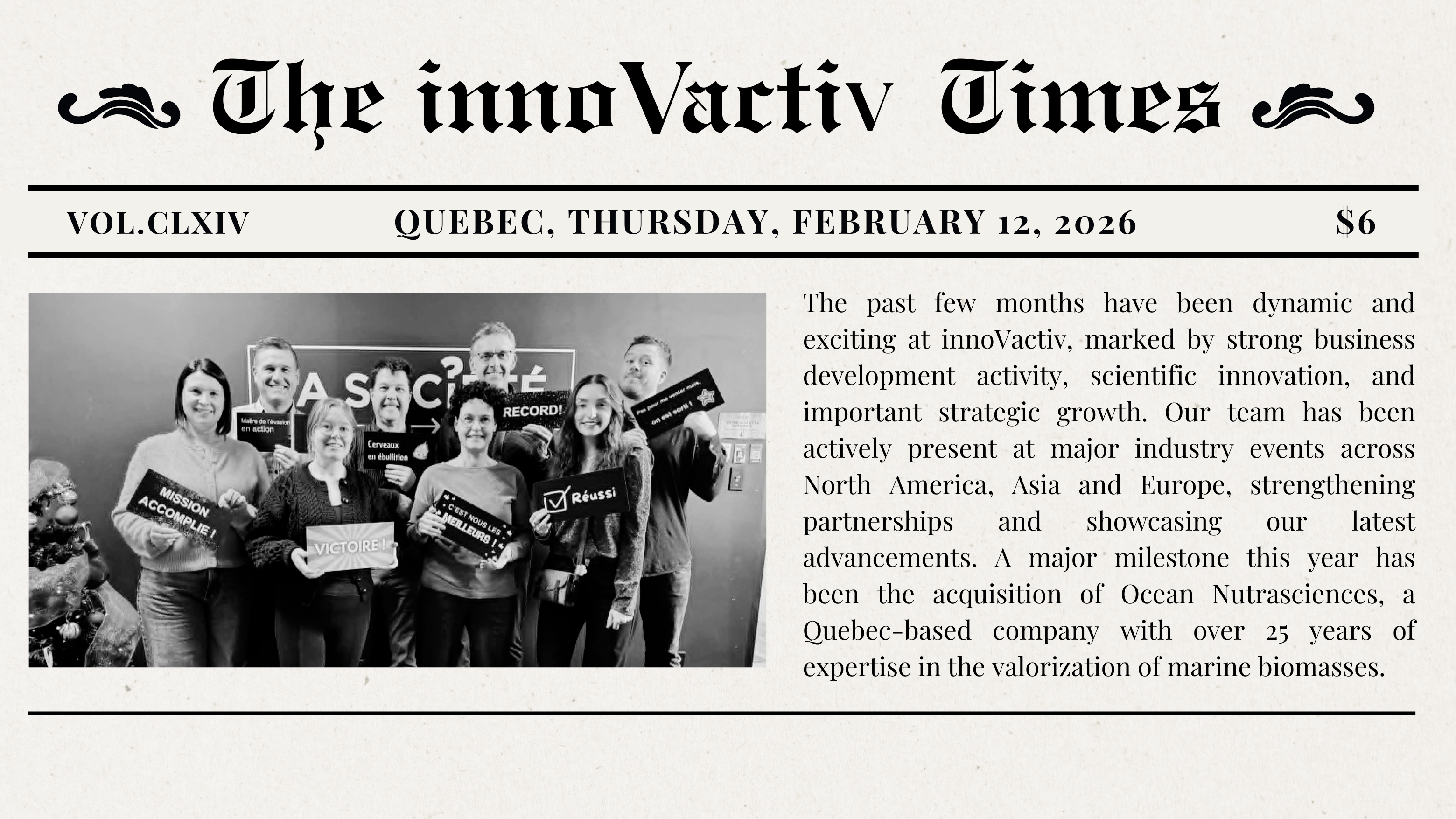 We are proud to share a major milestone in innoVactiv’s journey: the acquisition of Ocean NutraSciences, a Quebec-based company specializing in the transformation and valorization of biomasses into ingredients and finished products.